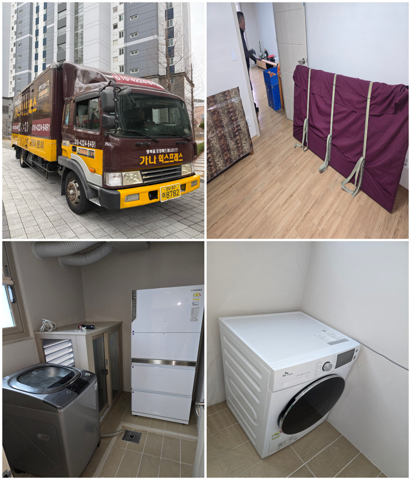 양산 도착 후에는 엘리베이터 동선을 확인하고 하차 공간을 정리한 뒤 배치 위치를 사전 체크하고 작업을 이어갔습니다. 하차 후에는 요청하신 위치에 맞춰 가전과 가구를 배치하고, 가구 재조립과 기본 정리까지 마무리해 입주 후 바로 생활이 가능하도록 도와드렸습니다.